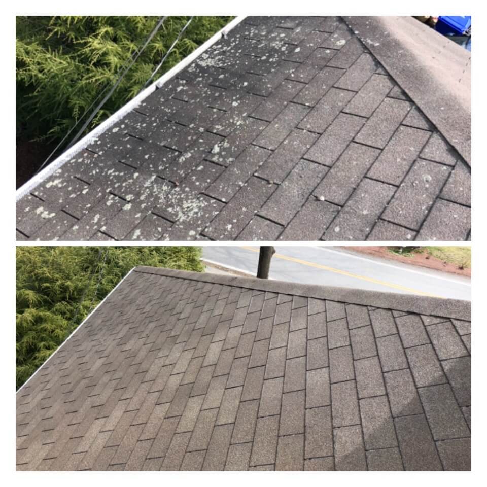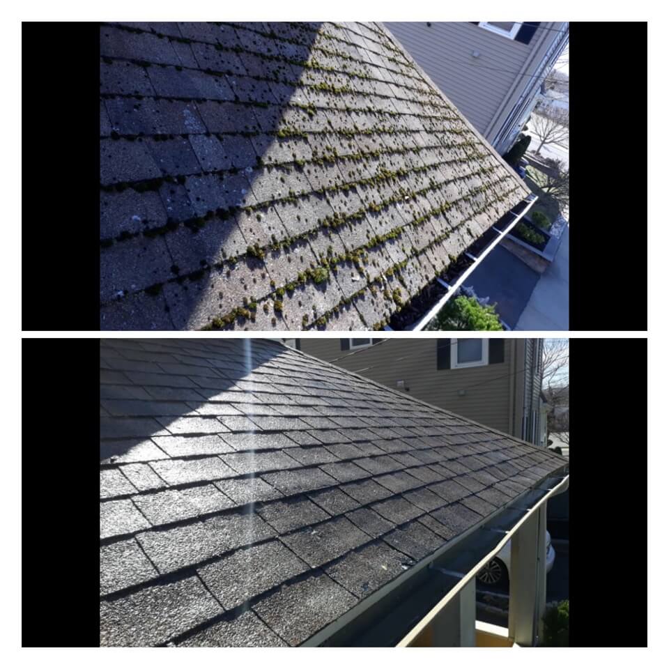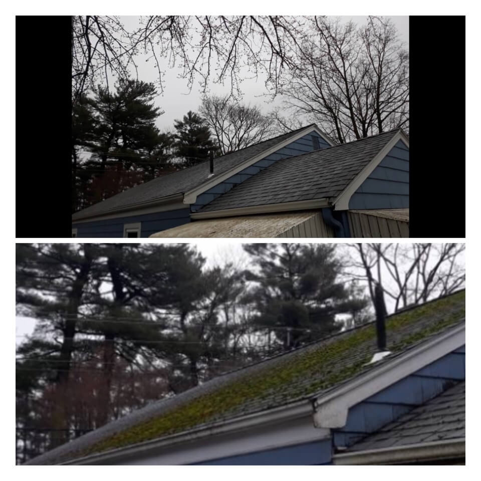 HiCleaners is the most experienced company in Acton, MA that deals with roof washing and roof soft washing. All of our employees are trained to recognize precise solution mixing ratios to provide you with the safest and most effective soft washing service. Roofs are a commonly neglected part of a house due to the fact that most people don’t have ladders to access it, so it is very easy to just leave it alone and forget about problems that may start to arise. Just like many home owners, discoloration and small bits of moss on a roof can be overlooked because of the misconception that it is just aesthetic. However, it isn’t just aesthetic, the moss slowly lifts the granules off the shingles which in turn shorten the life of the shingle. The moss also spreads, just like any bacteria if it is left alone for too long, it can quickly become a problem that spirals out of control. Call HiCleaners for a free quote, we only use the most advanced eco-friendly solutions and equipment to make sure the job is done right, for the safety of the employees, your plants, grass, pets, and children.
