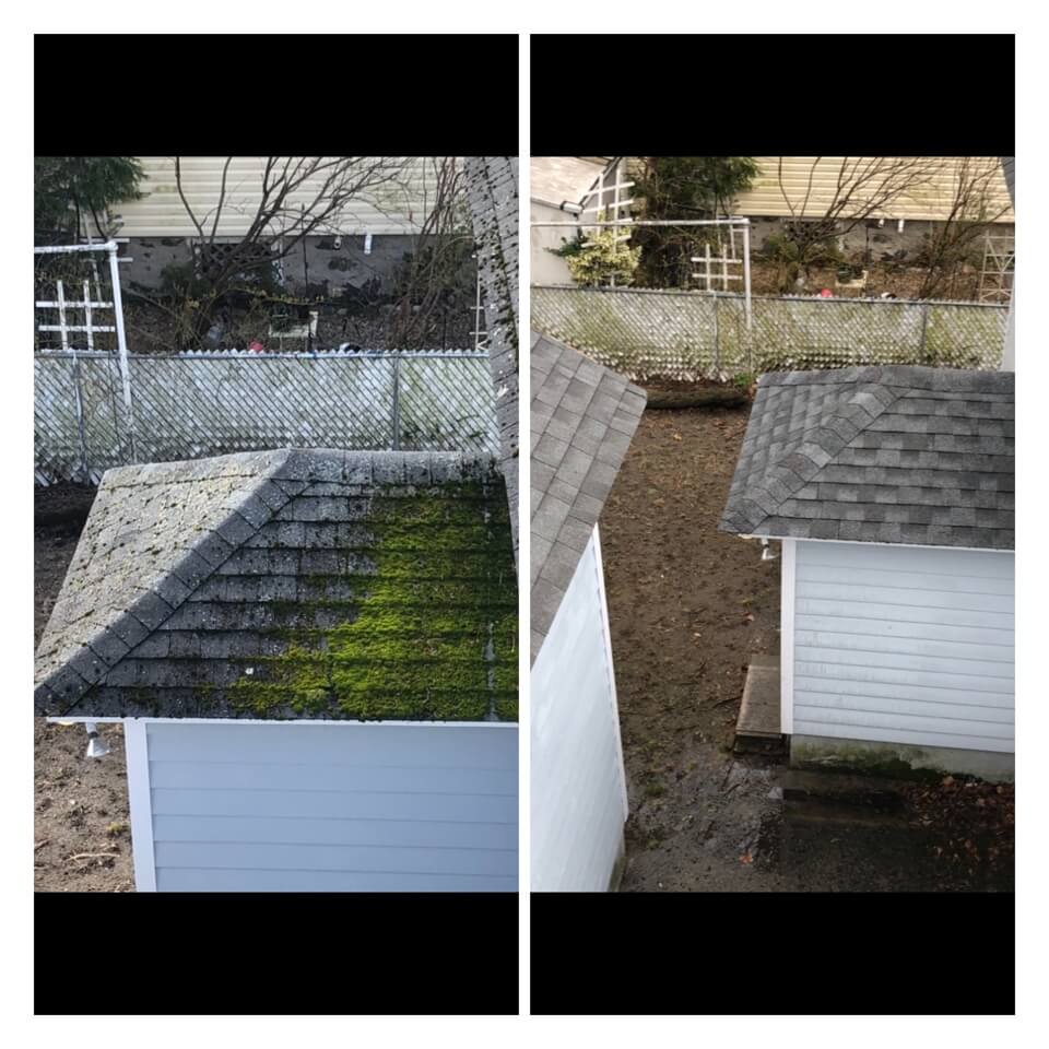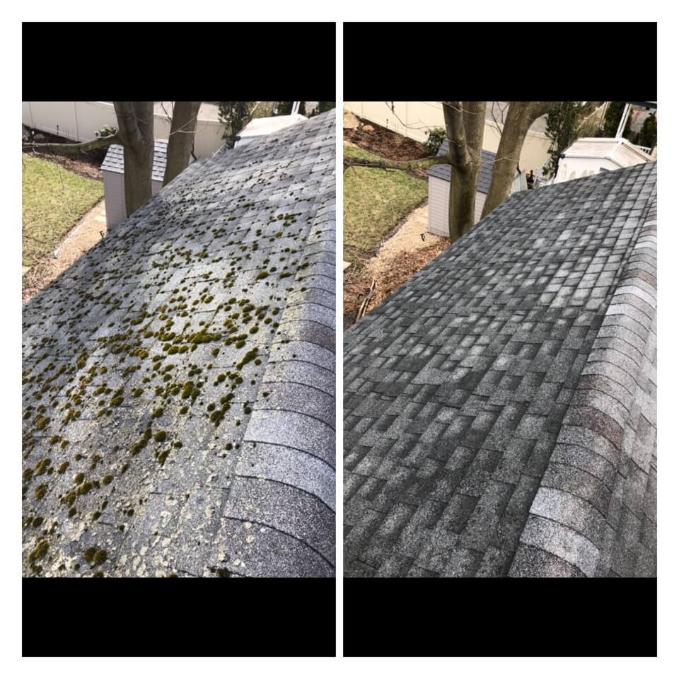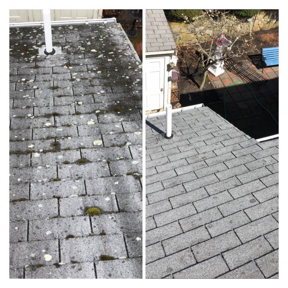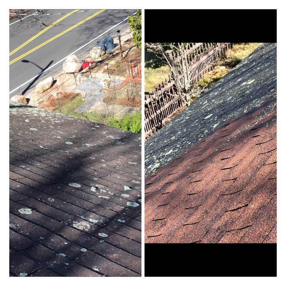 HiCleaners is the most experienced company in Acton, MA that deals with roof washing and roof soft washing. All of our employees are trained to recognize precise solution mixing ratios to provide you with the safest and most effective soft washing service. Roofs are a commonly neglected part of a house due to the fact that most people don’t have ladders to access it, so it is very easy to just leave it alone and forget about problems that may start to arise. Just like many home owners, discoloration and small bits of moss on a roof can be overlooked because of the misconception that it is just aesthetic. However, it isn’t just aesthetic, the moss slowly lifts the granules off the shingles which in turn shorten the life of the shingle. The moss also spreads, just like any bacteria if it is left alone for too long, it can quickly become a problem that spirals out of control. Call HiCleaners for a free quote, we only use the most advanced eco-friendly solutions and equipment to make sure the job is done right, for the safety of the employees, your plants, grass, pets, and children.